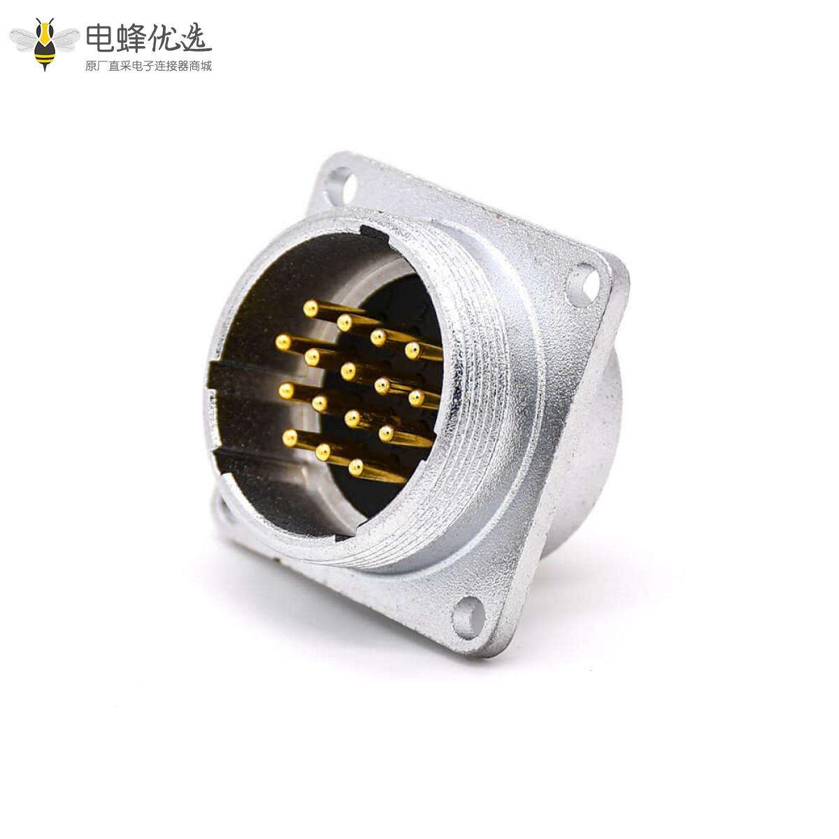 P系列,28,插座,公头,16芯,直式,面板安装,焊杯,法兰,镀金