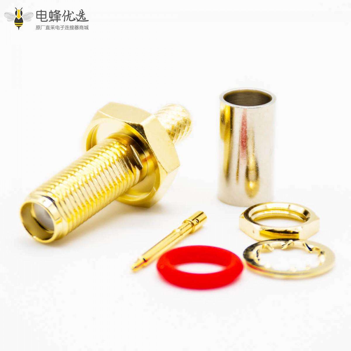 RP-SMA,母头,直式,接线,LMR200,压接,前锁,防水,50Ω,铜,镀金;