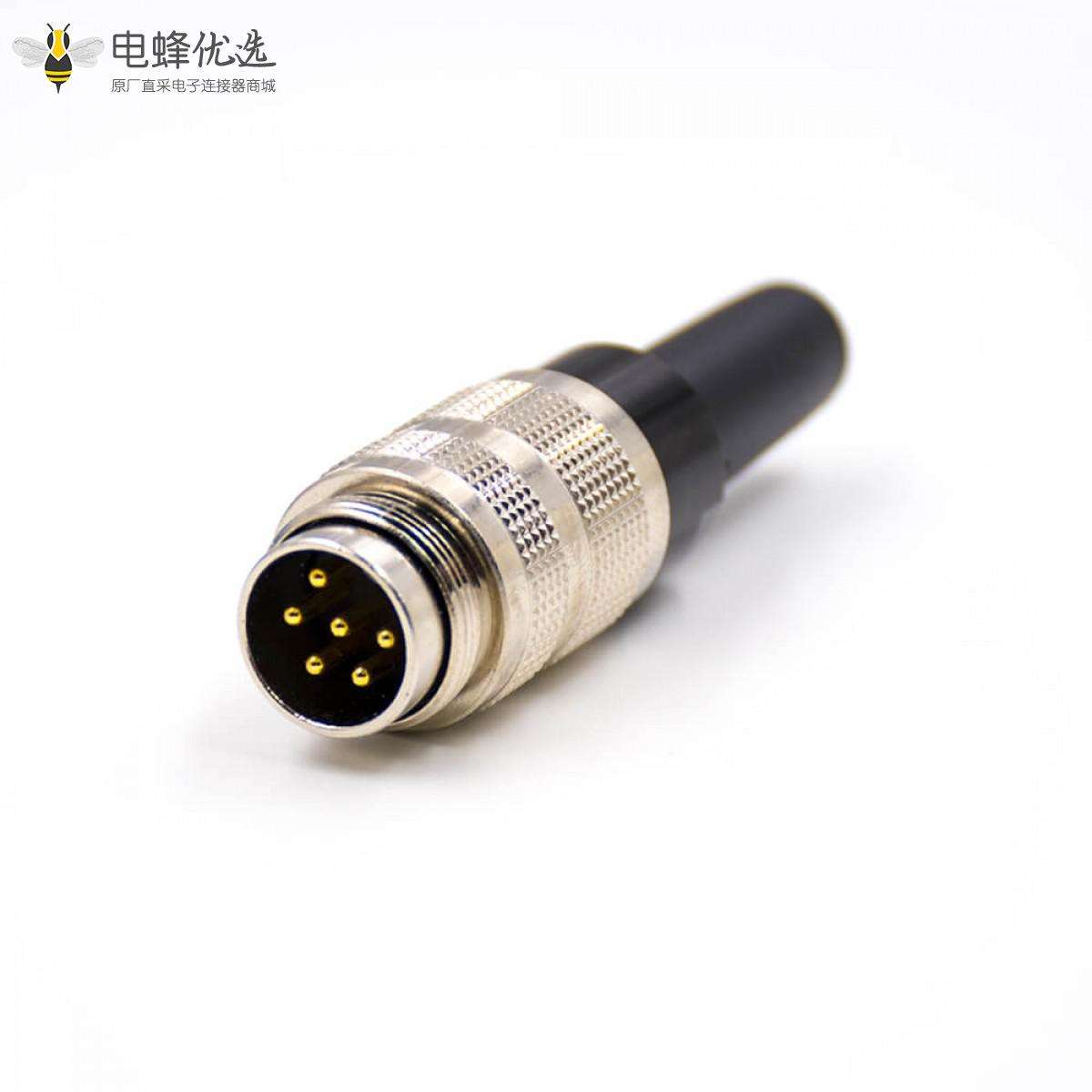 M16组装接头,公头,6芯,A扣,直式,接线,焊杯,不带屏蔽;