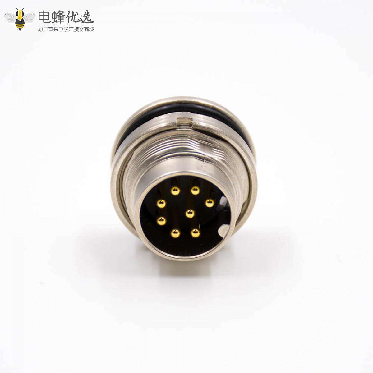 M16板端插座,公插座,8芯,A扣,直式,前锁穿墙,焊杯,接线;
