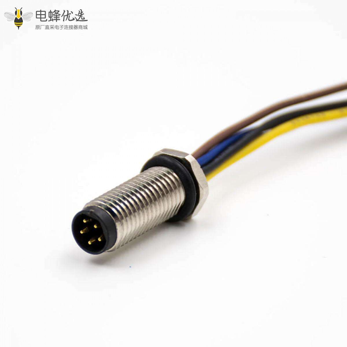 M8,5芯,B扣,公头,直式,前锁板,板端插座,接线,焊接式 ;
