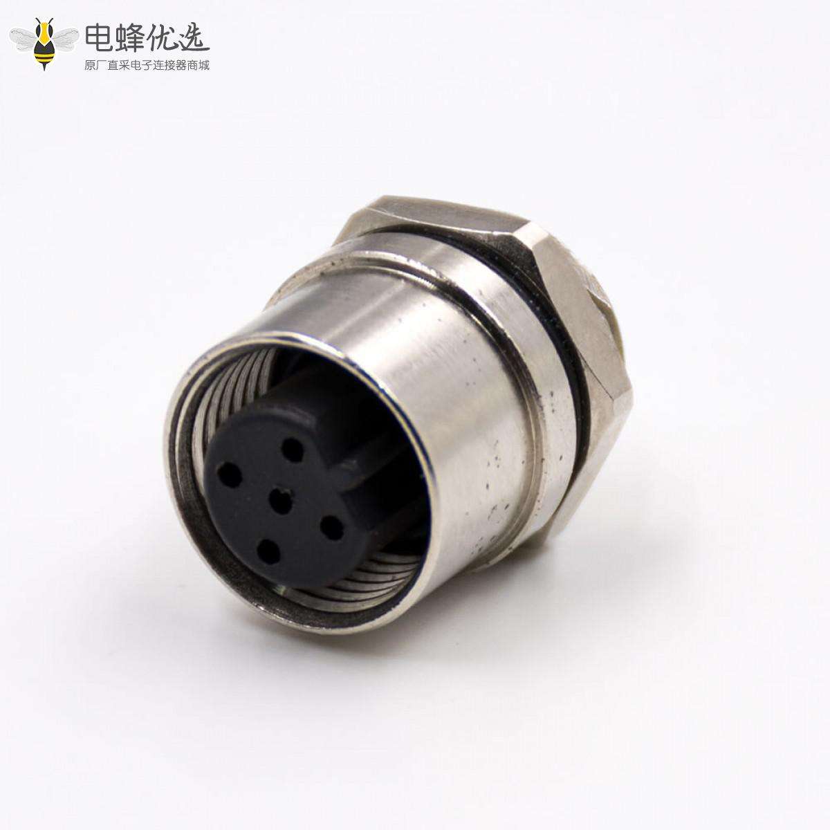 - M12,5芯,B扣,母头,直式,后锁板,板端插座,接线,焊接式;