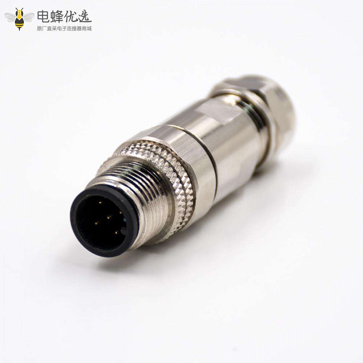 M12,5芯,A扣,公头,直式,带屏蔽,组装接头,接线,螺丝锁线;