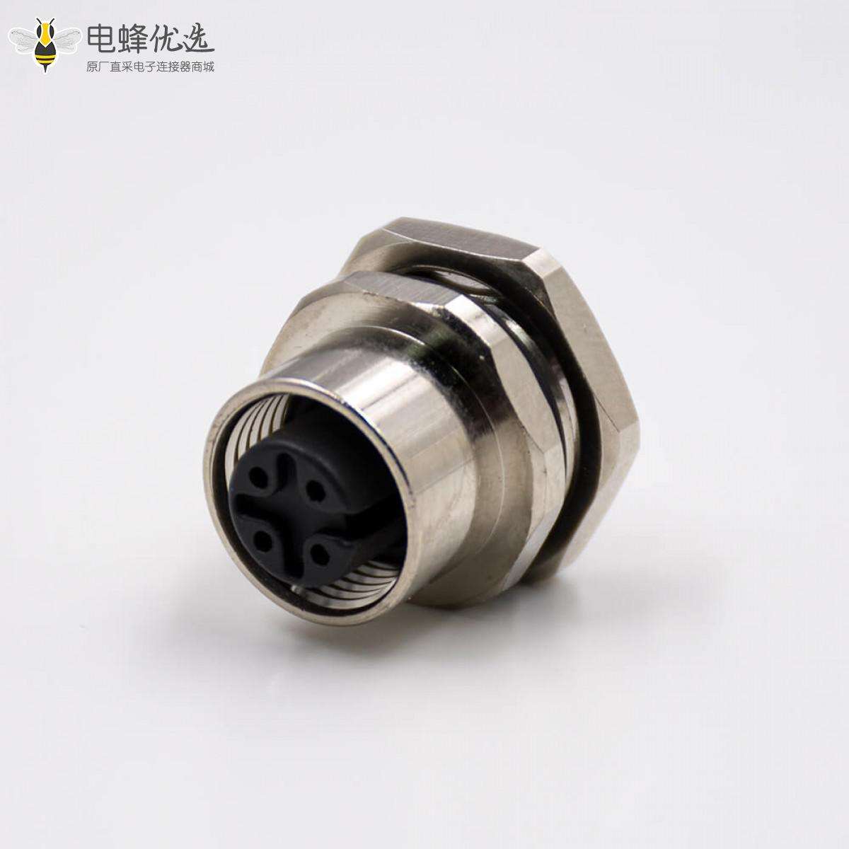 M12板端插座,A扣,直式,4芯,母头,后锁板,接线,焊接式;
