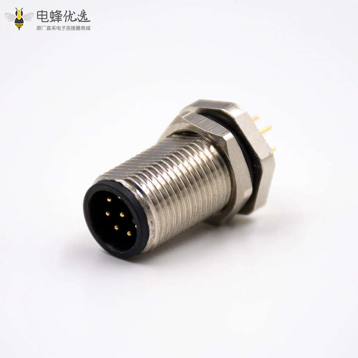 M12板端插座,A扣,直式,8芯,公头,前锁板,接PCB板,防水;