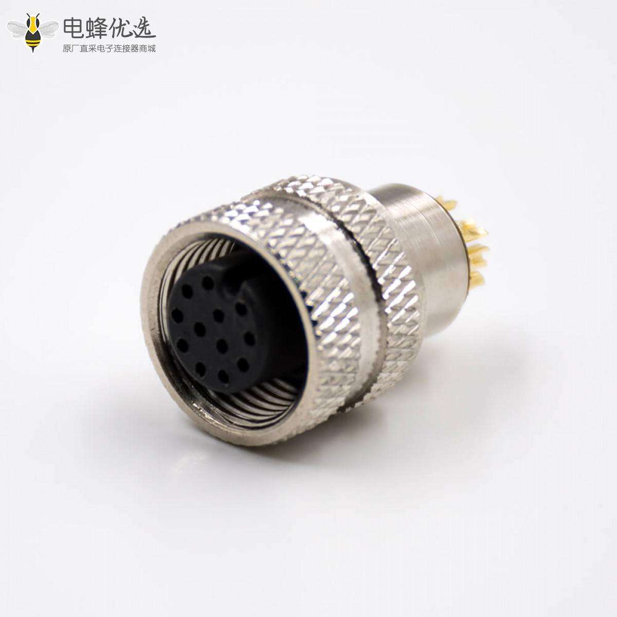 - M12组装接头,A扣,12芯,母头,直式,接线,焊线式,带屏蔽;