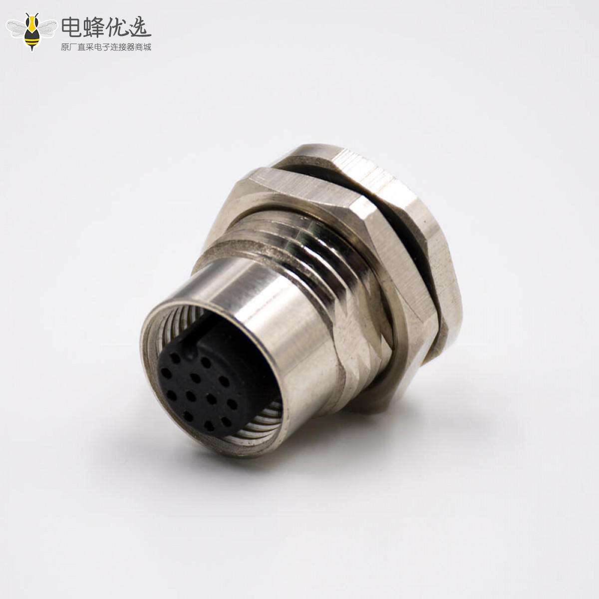 M12板端插座,A扣,直式,12芯,母头,前锁板,接线,焊接式;