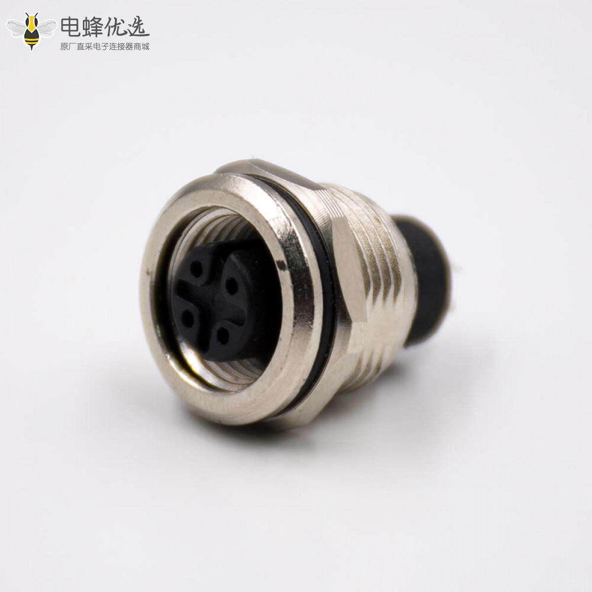M12组装接头,A扣,4芯,母头,直式,接线,焊线式,不带屏蔽,锌合金;