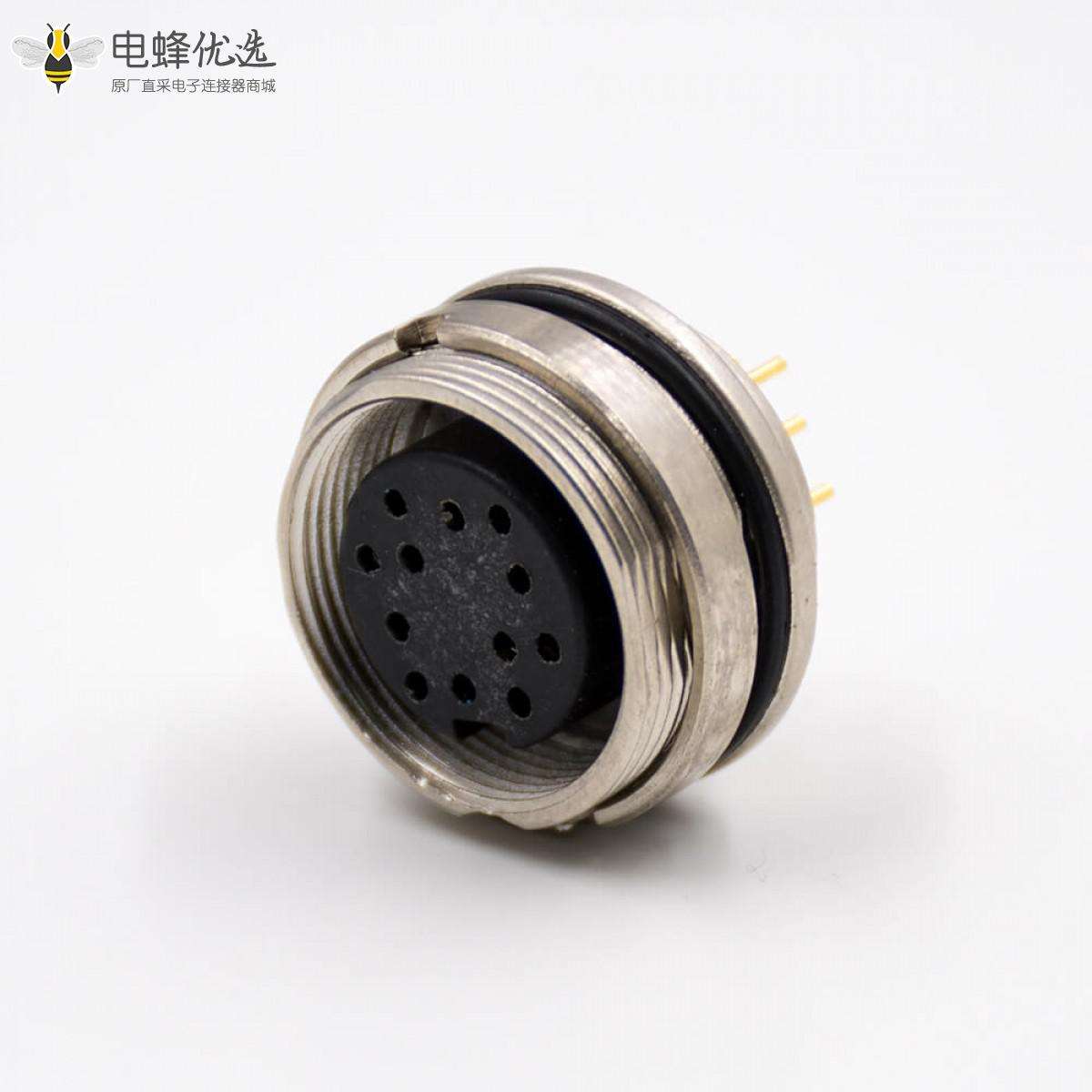 M16板端插座,A扣,12芯,母头,直式,前锁板,接PCB板;