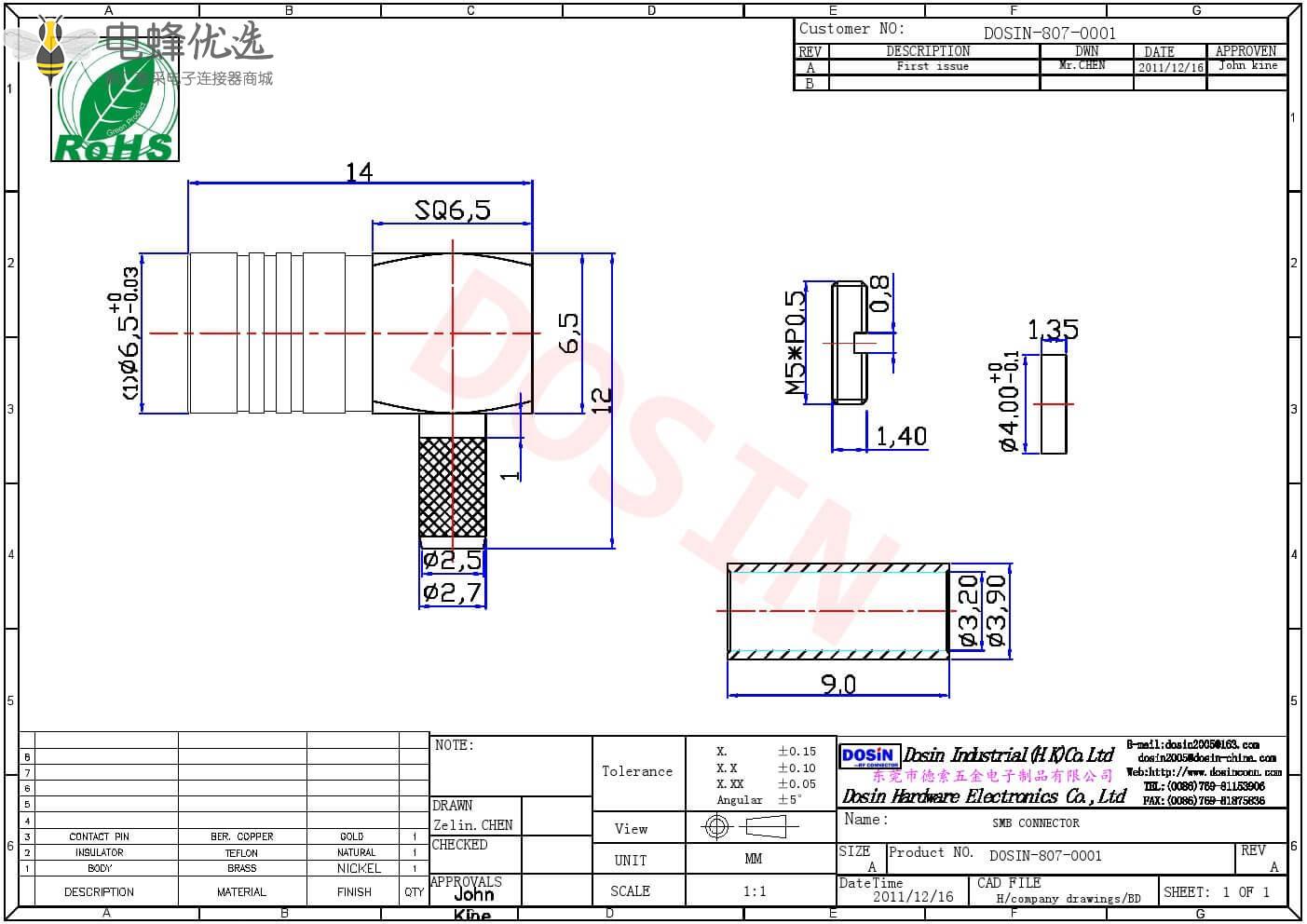 - 高性能SMB接头,宽频,低反射;
