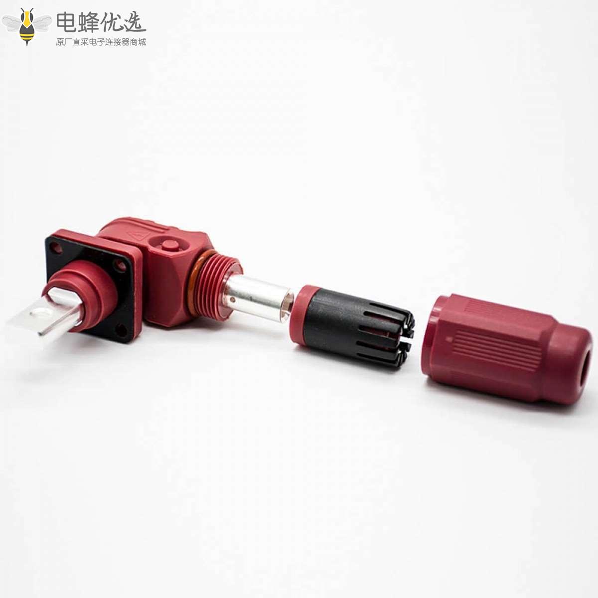 高压储能连接器,弯式,母插头,接线,直式,公插座,铜牌连接,塑料,红色,单芯14MM,400A,IP67,1000VAC,120mm2