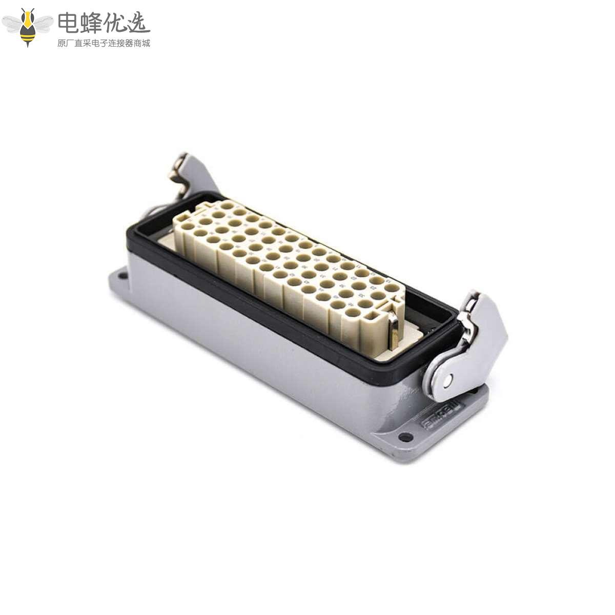 重载连接器,上壳体&底壳,开孔安装,2耳,单扣,斜出口,塑料铁扣,公母对接,不带针公头,56芯,PG21,H24B外壳;