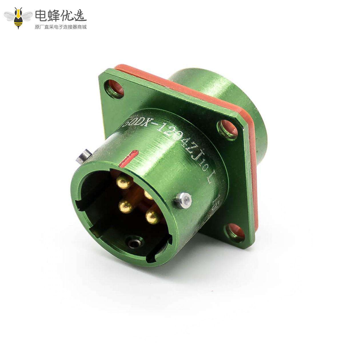 - Y50DX,14壳体号,4芯,插座,公,直式,卡口连接,面板安装,4孔法兰,焊杯,铝合金,光亮绿色阳极化