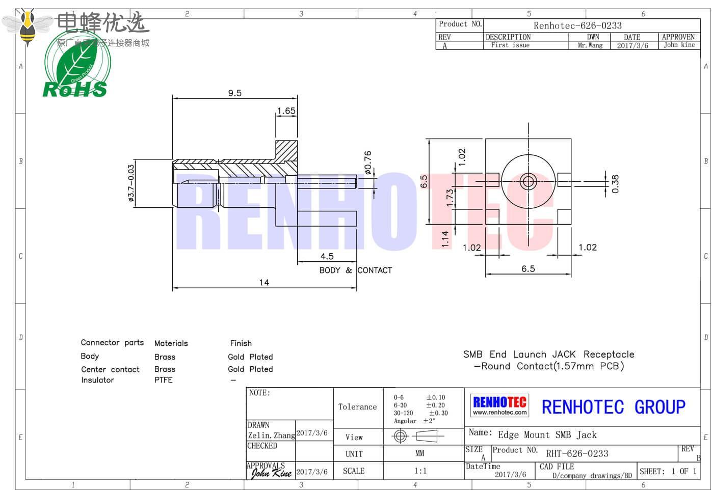 - PCB板端,母头,边缘卡板,RF射频同轴,SMB连接器,50欧姆;