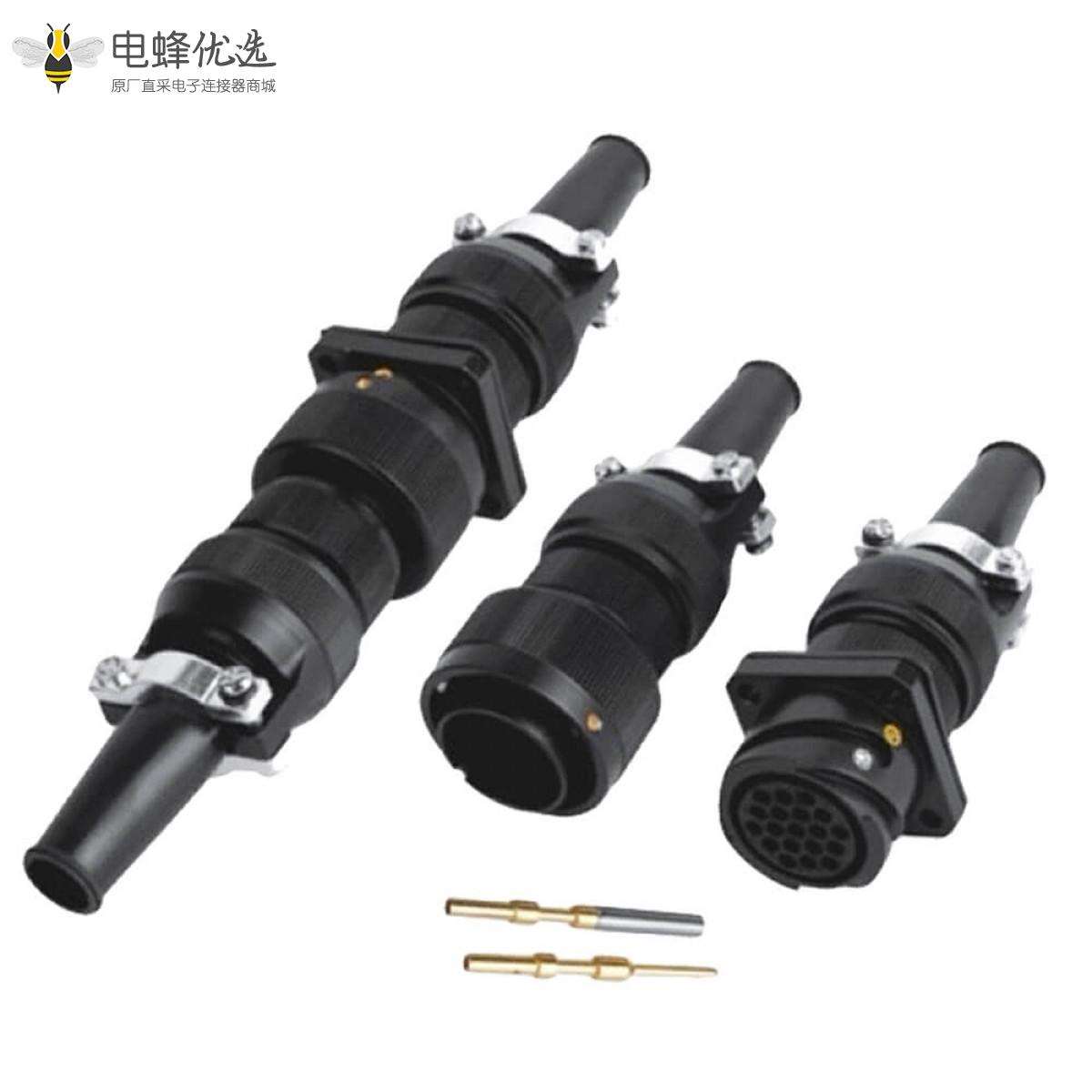 牵引连接器,JL,插头&插座,公母对接,19芯,直式,面板安装,四孔法兰,卡扣连接,接线,焊接,美标;
