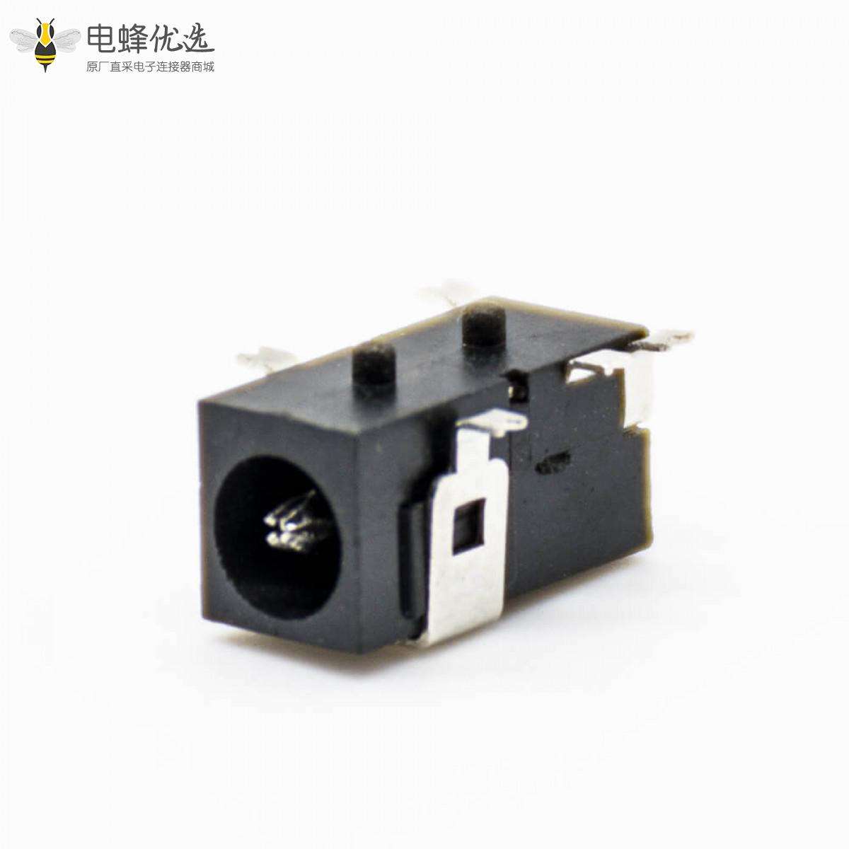 DC电源连接器,公插座,贴板,贴片焊接,弯式,不带屏蔽,塑料,黑色;