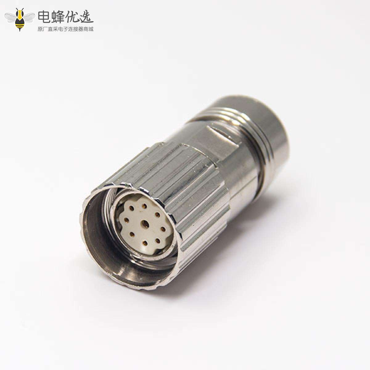 M23, 组装接头, 9芯, 母, 直式, 压接, 带屏蔽;
