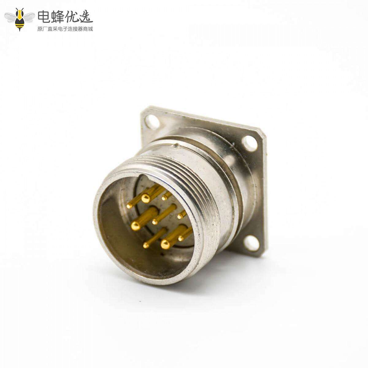 M23,插座, 9芯,公,直式, 接面板/线材, 4孔方形法兰,焊线,带屏蔽;