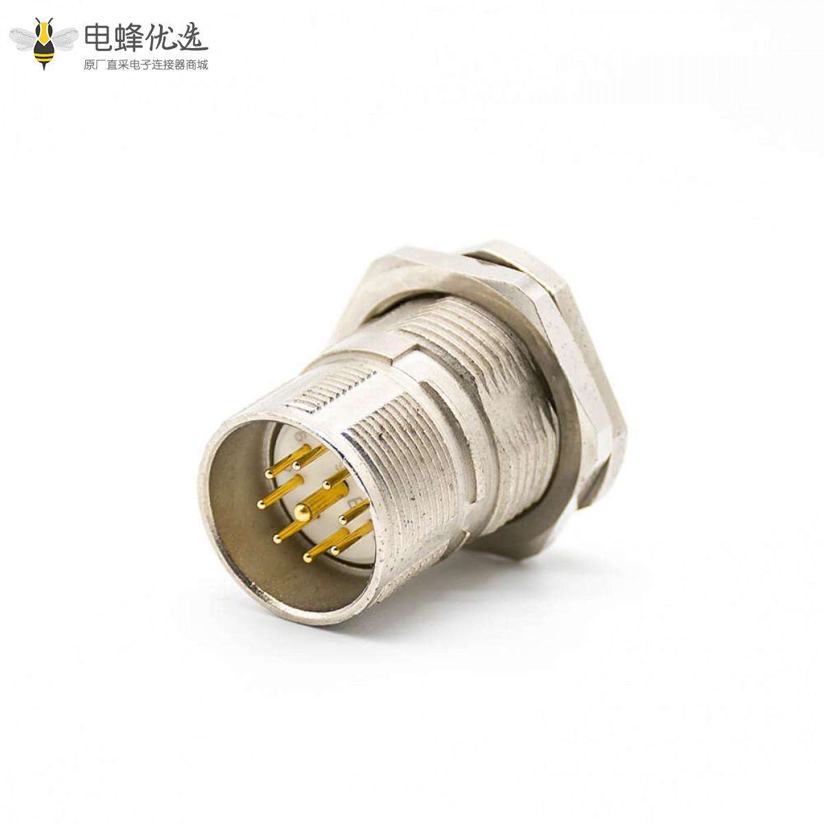 9针,公,直式,面板安装,正面安装,屏蔽,M23连接器;