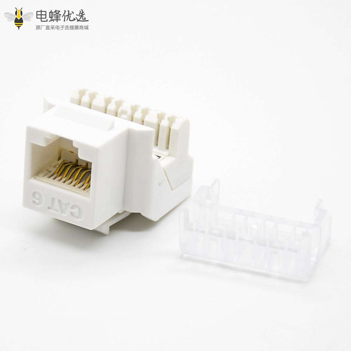 RJ45插座,8P8C,单端口,1*1,弯式90°,触头镀金,插孔,面板安装,非屏蔽,CAT6;