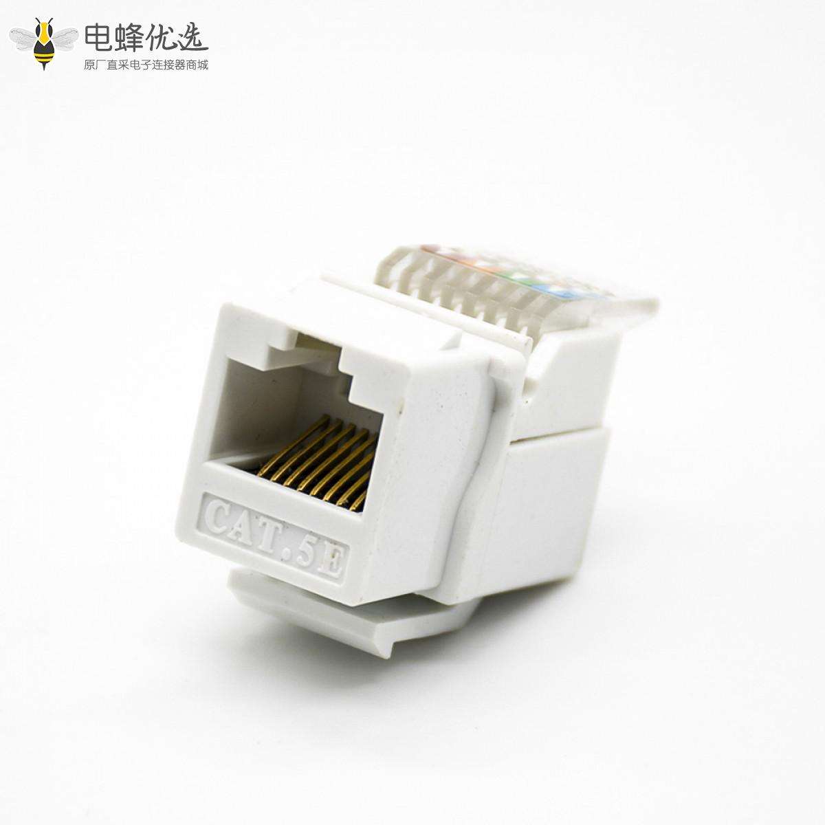 RJ45插座,8P8C,单端口,1*1,弯式90°,触头镀金,插孔,面板安装,非屏蔽,CAT5E,免工具;