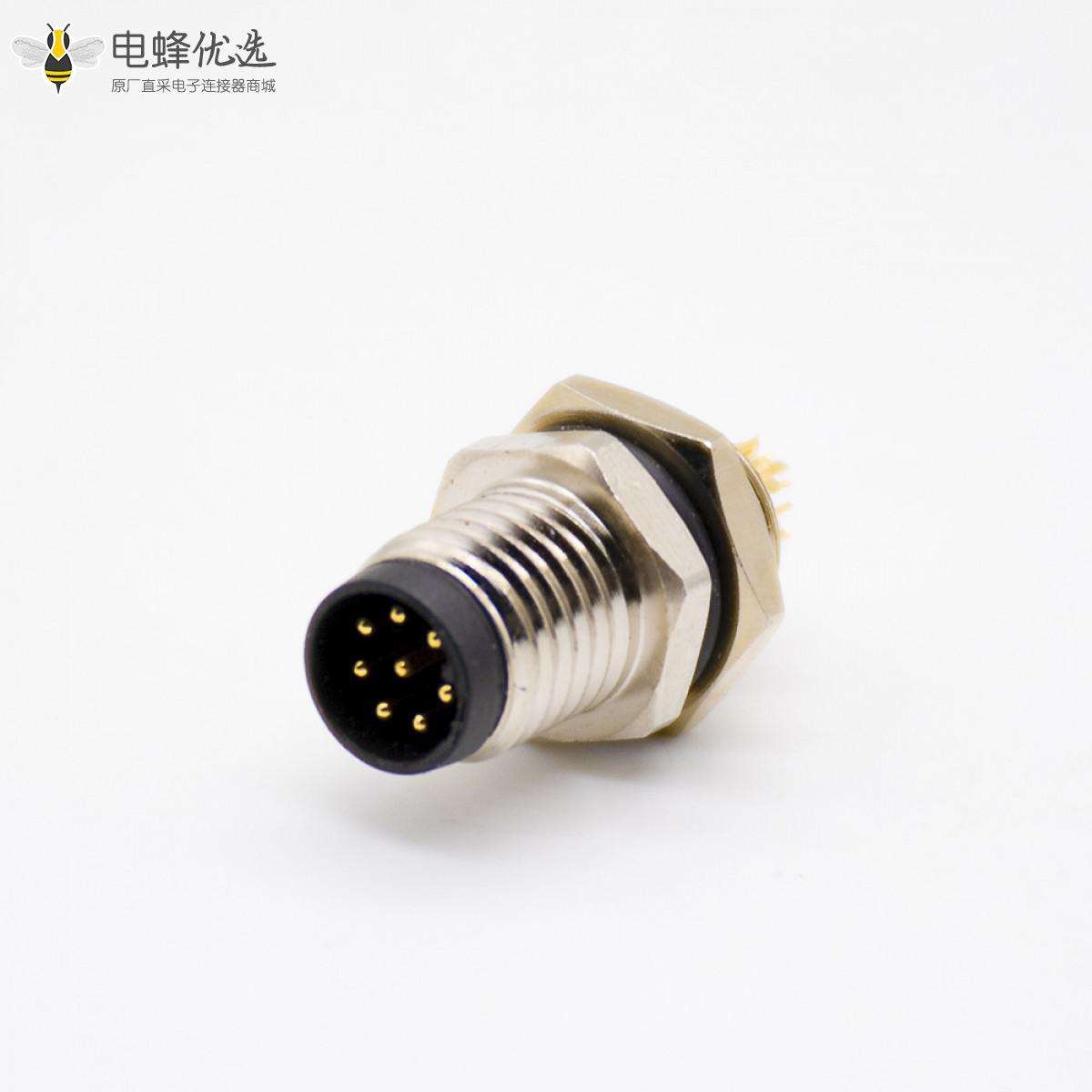 - B编码,8针,公,直,面板安装,后锁,M8连接器;