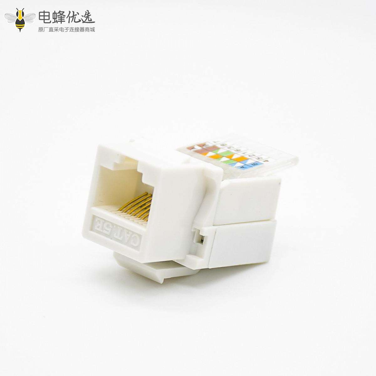 RJ45插座,8P8C,单端口,1*1,弯式90°,触头镀金,插孔,面板安装,非屏蔽,CAT5E;