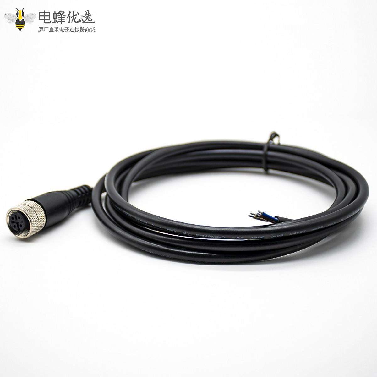 M12,线束, A Code,单边线,4芯,母,直,接线,焊接,不带屏蔽,2米;