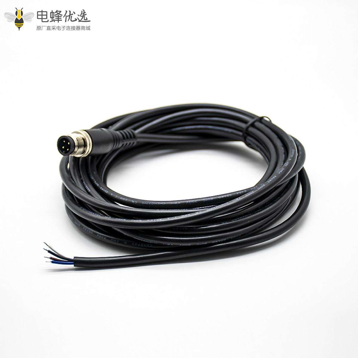 M12,线束, A Code,单边线,4芯,公,直,接线,焊接,不带屏蔽,5米;