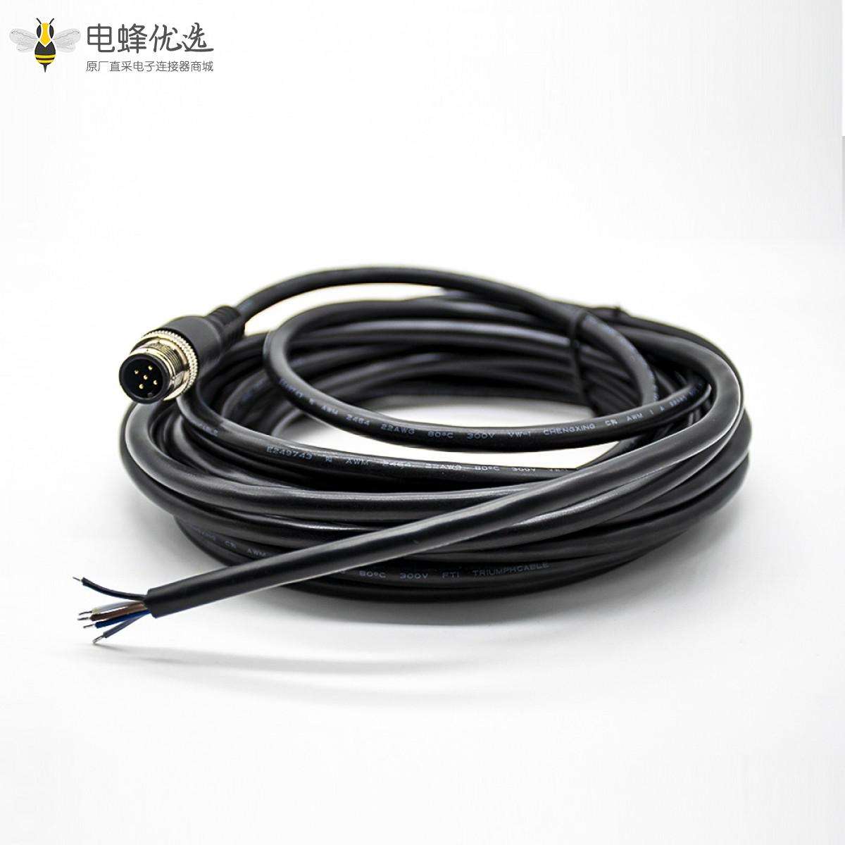M12,线束, A Code,单边线,5芯,公,直,接线,焊接,不带屏蔽,5米;