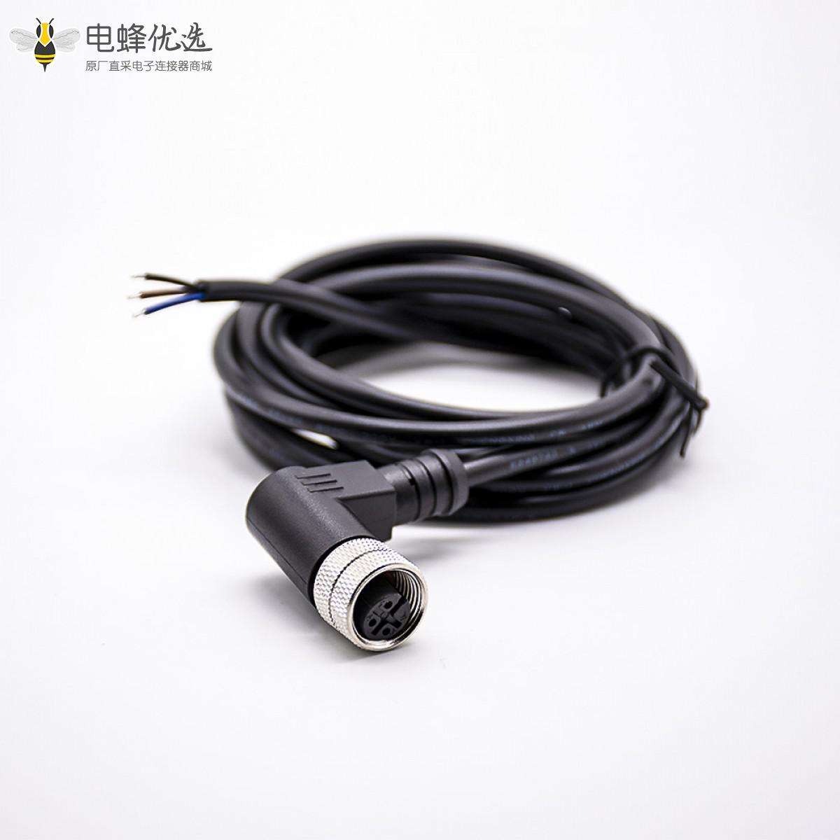 M12,A 编码,线束,3芯,母,弯式,焊线,单边线,不带屏蔽,2米;