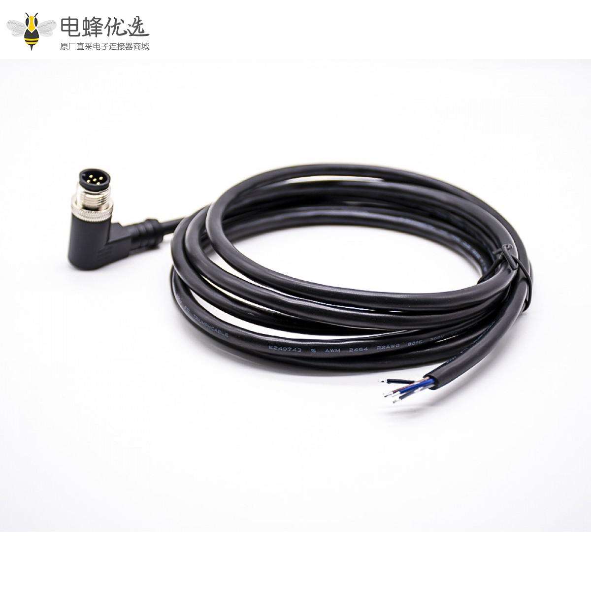 M12,A 编码,线束,5芯,母,90°弯,焊线,单边,不带屏蔽,2米;