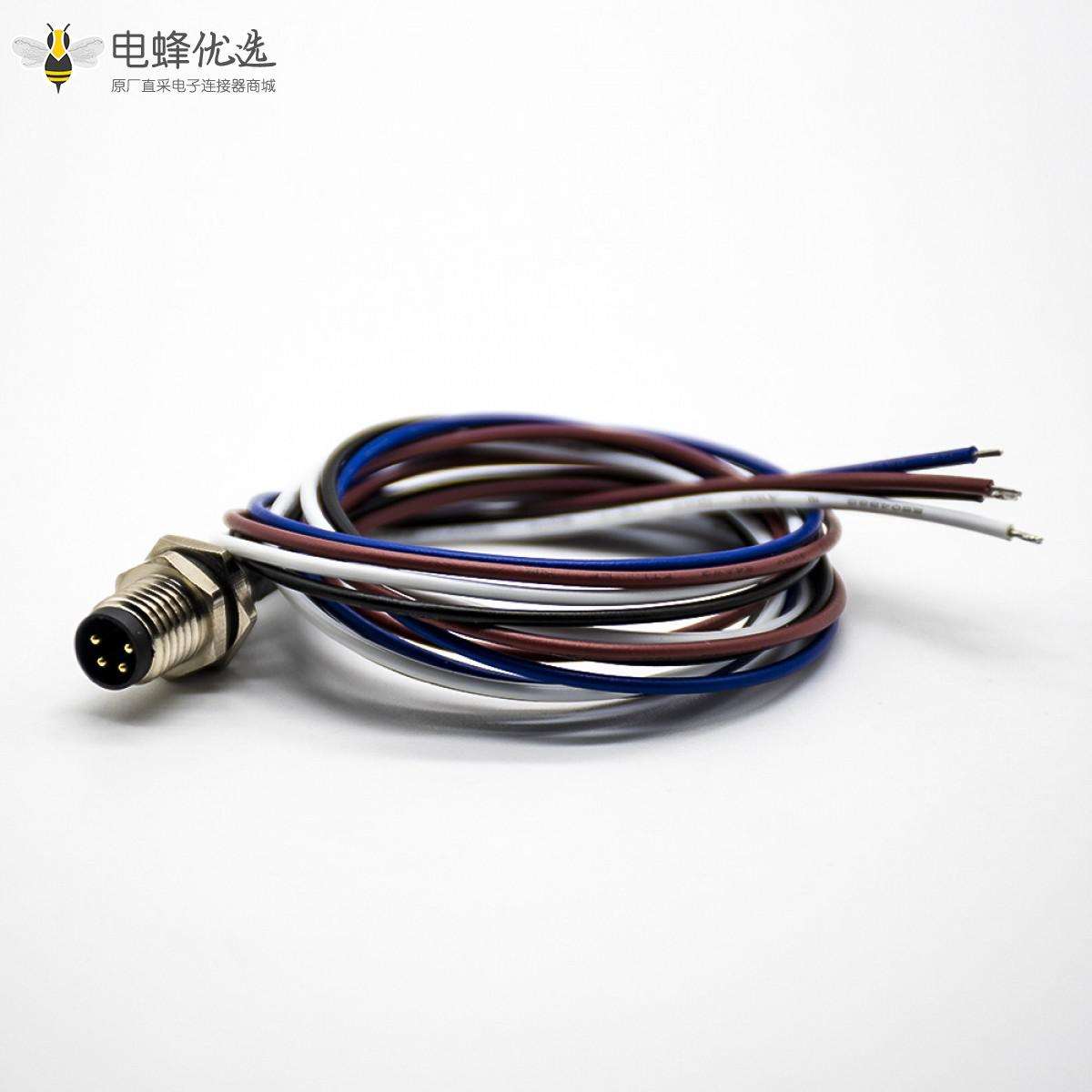 - M8,板端插座,4芯,直式,公头板端,焊线,后锁板,防水,带屏蔽,0.2M;