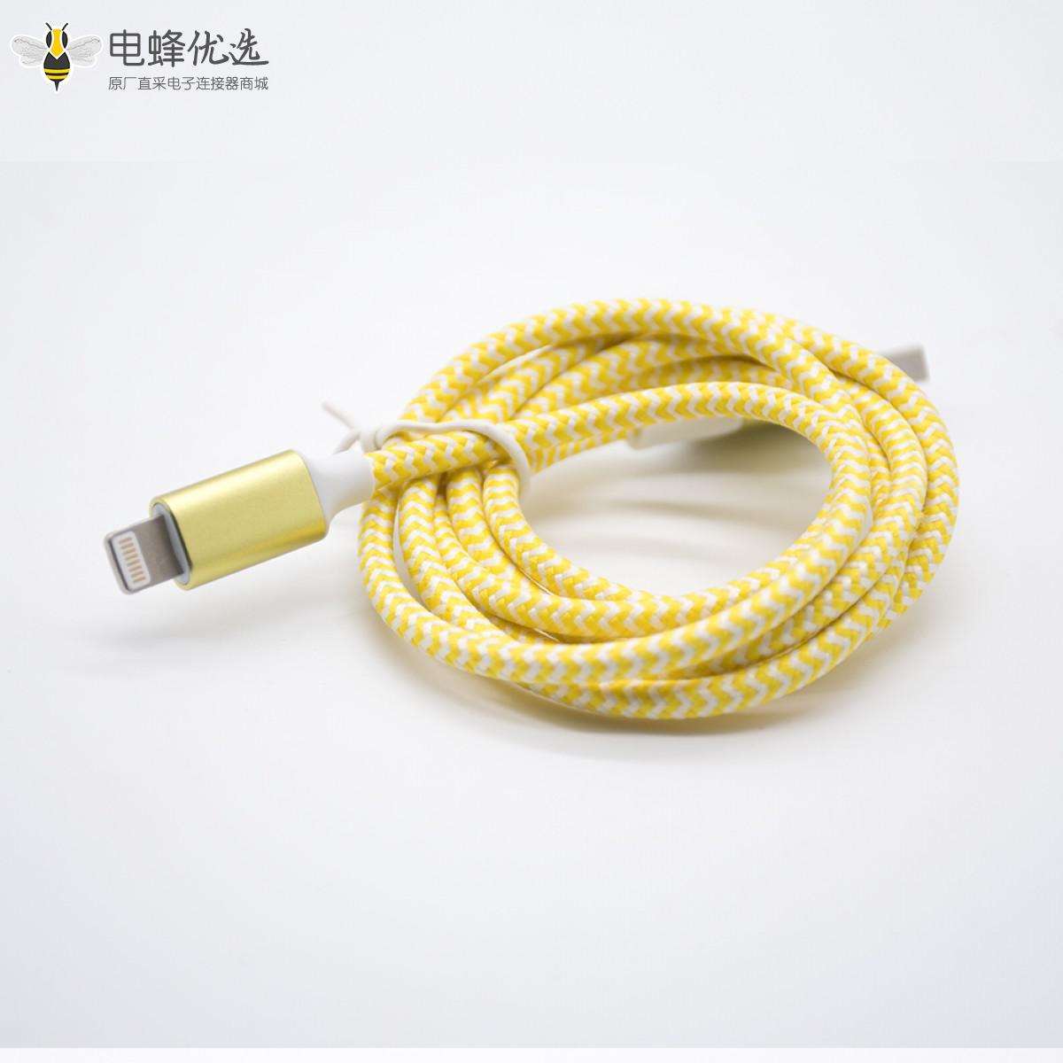USB转接线,USB,公头,直式,苹果插头,公头,直式,黄色编织线;