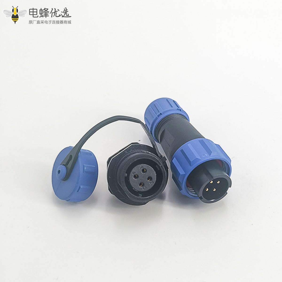 SP13系列,直式,公插头,母后螺母插座,焊接中心针,4芯;