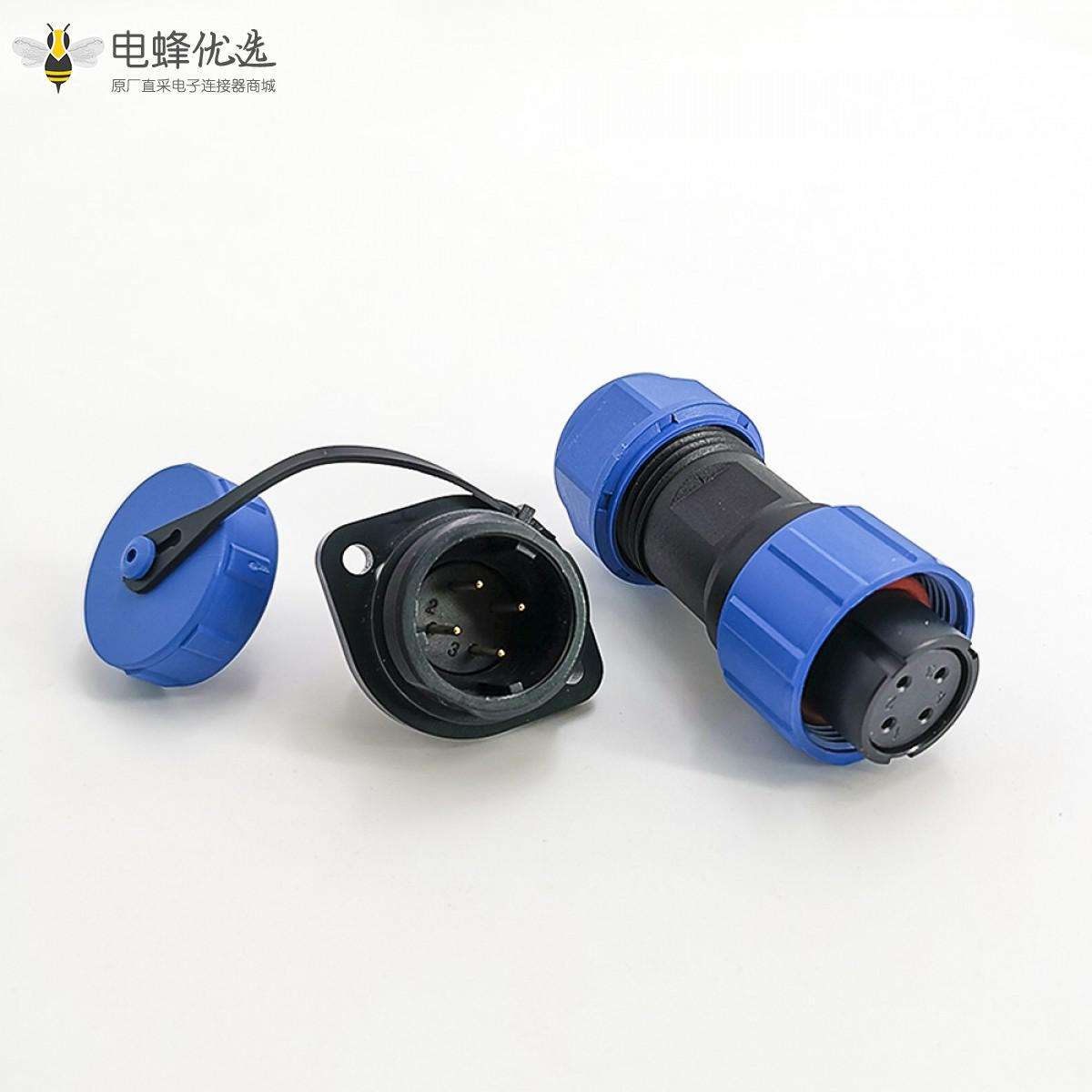 SP17系列,直式,母插头,公菱形插座,2孔法兰,面板安装,焊接中心针,4芯;
