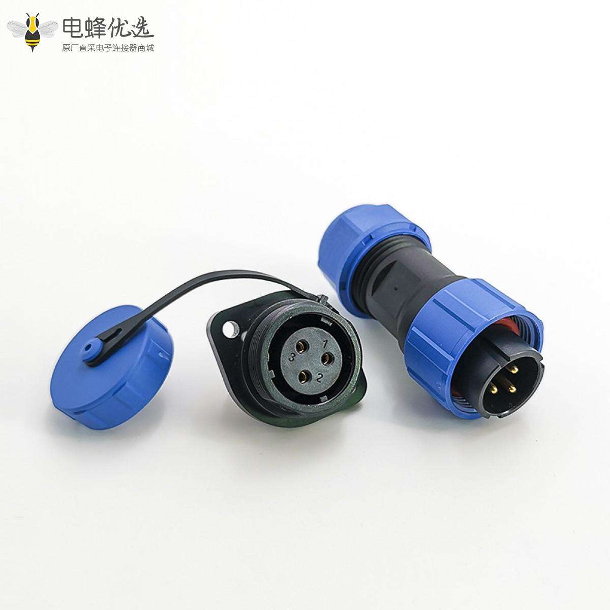 SP17系列,直式,公插头,母菱形插座,2孔法兰,面板安装,焊接中心针,3芯;