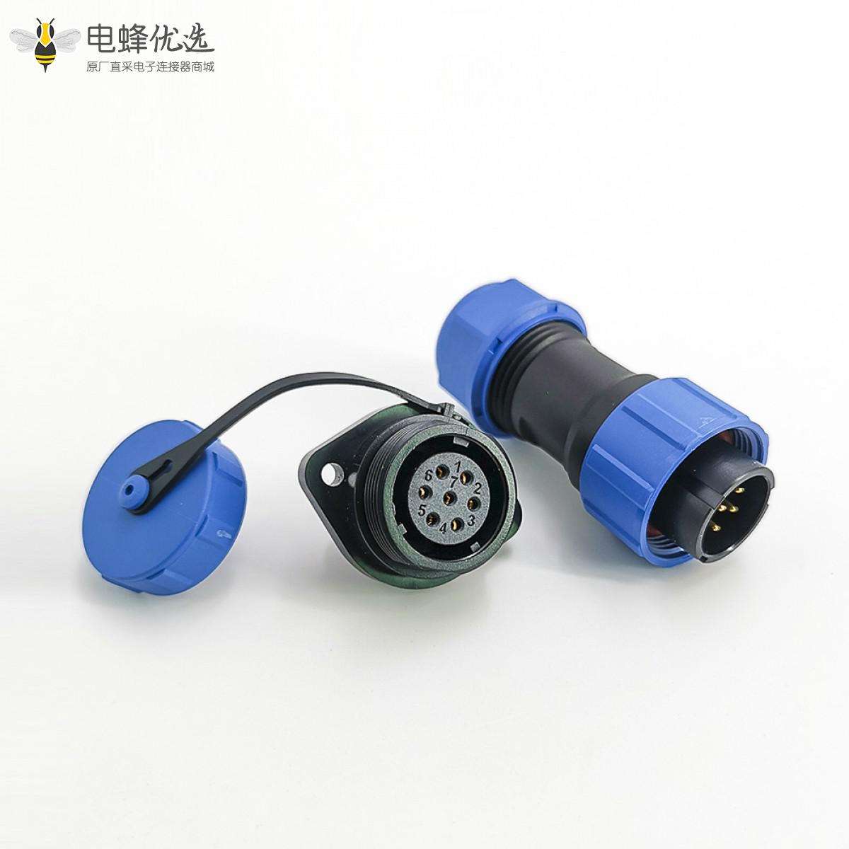 SP17系列,直式,公插头,母菱形插座,2孔法兰,面板安装,焊接中心针,7芯;