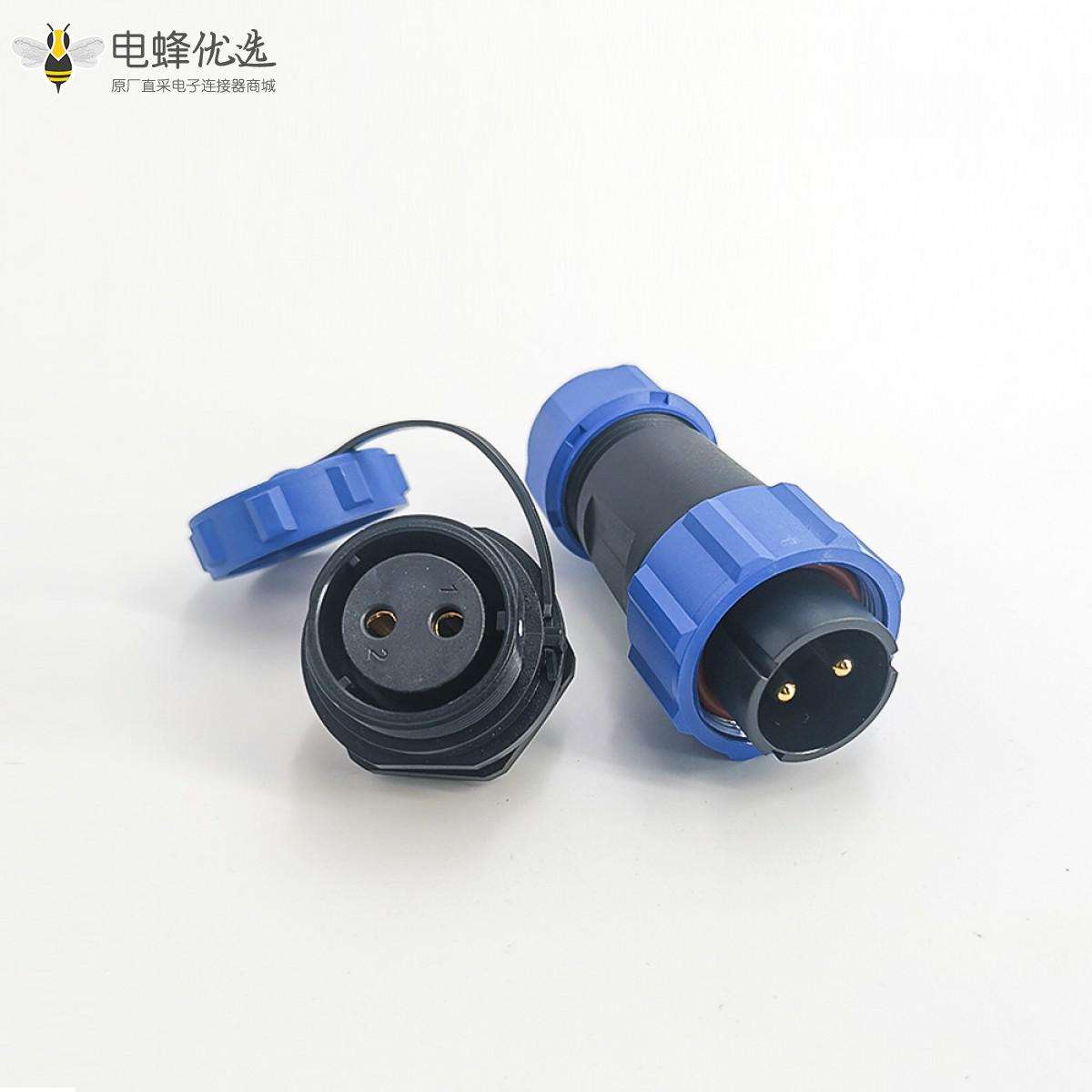 SP21系列,直式,公插头,母后螺母插座,面板安装,焊接中心针,2芯;