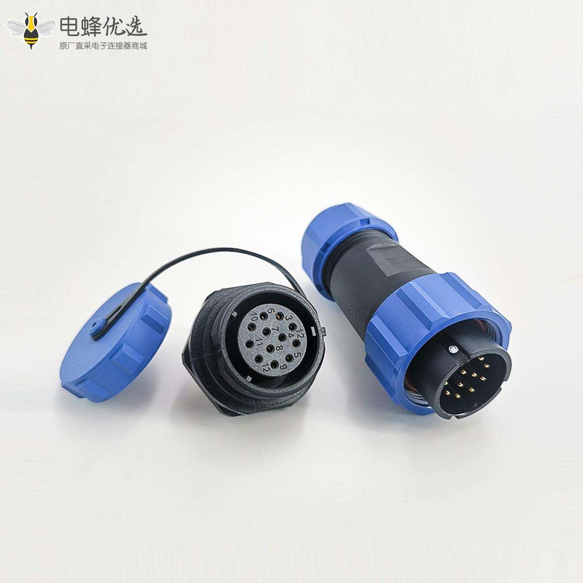 SP21系列,直式,公插头,母后螺母插座,面板安装,焊接中心针,12芯;