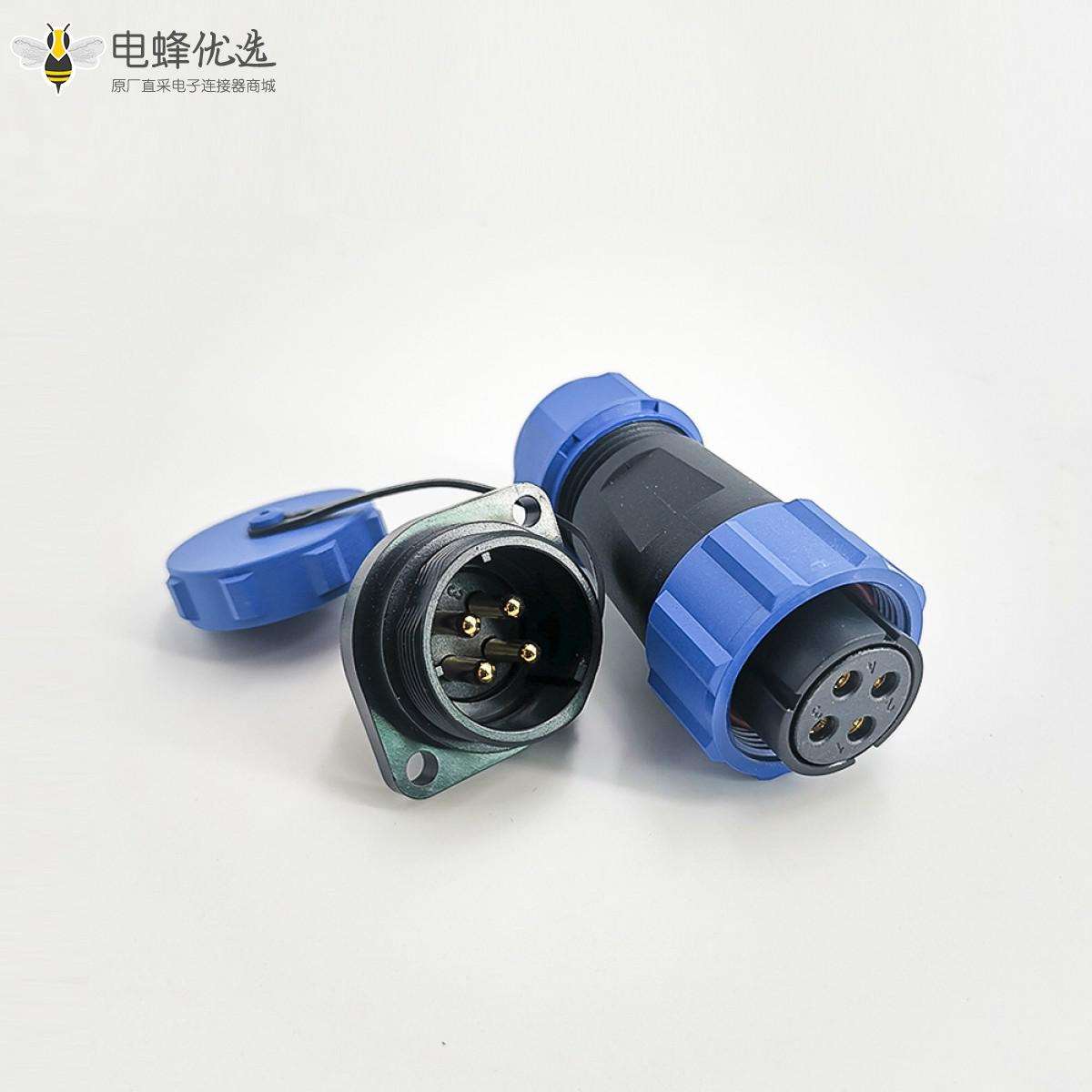 SP21系列,直式,2孔法兰,公菱形插座,母插头,面板安装,焊接中心针,4芯;