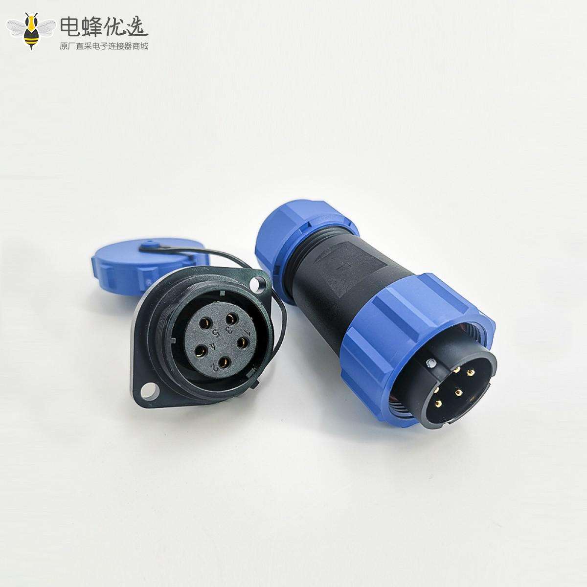 SP21系列,直式,公插头,2孔法兰,母插座,菱形插座,面板安装,焊接中心针,5芯;
