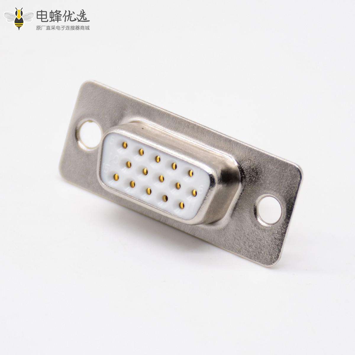 - D-sub连接器,车针型,母头,15芯,3排,镀镍,直式,焊杯,白色胶芯;