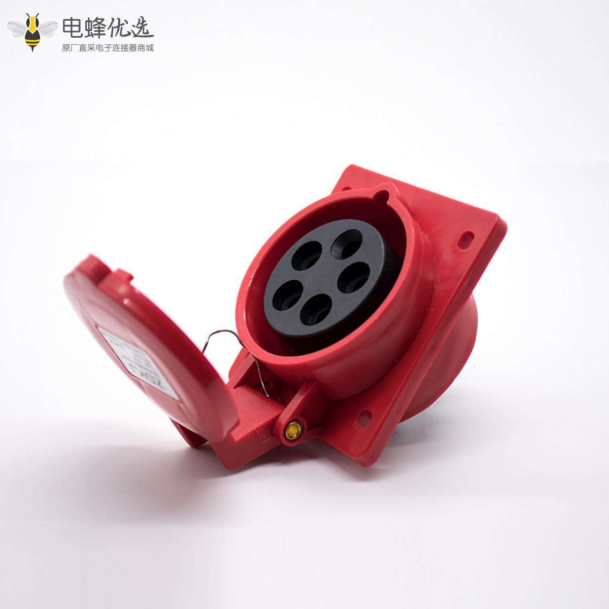 暗装斜座, 5芯, 母头, 16A, 380V-415V, IP44, 3P+N+E, 红色;