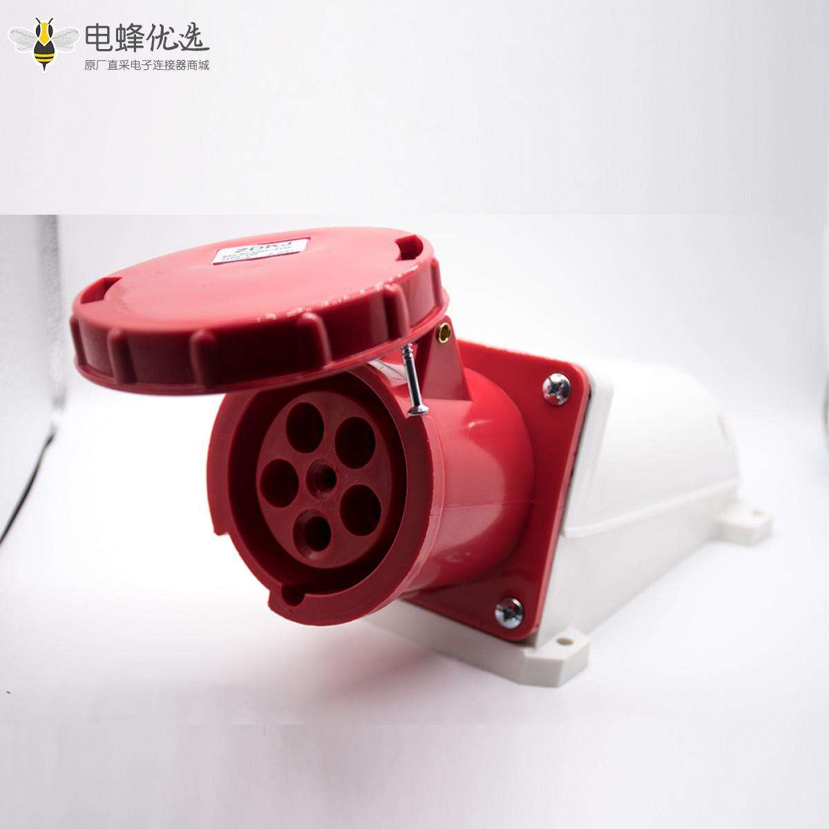 明装插座, 5芯, 母头, 63A, 380V-415V, IP67, 3P+E+N, 红色;
