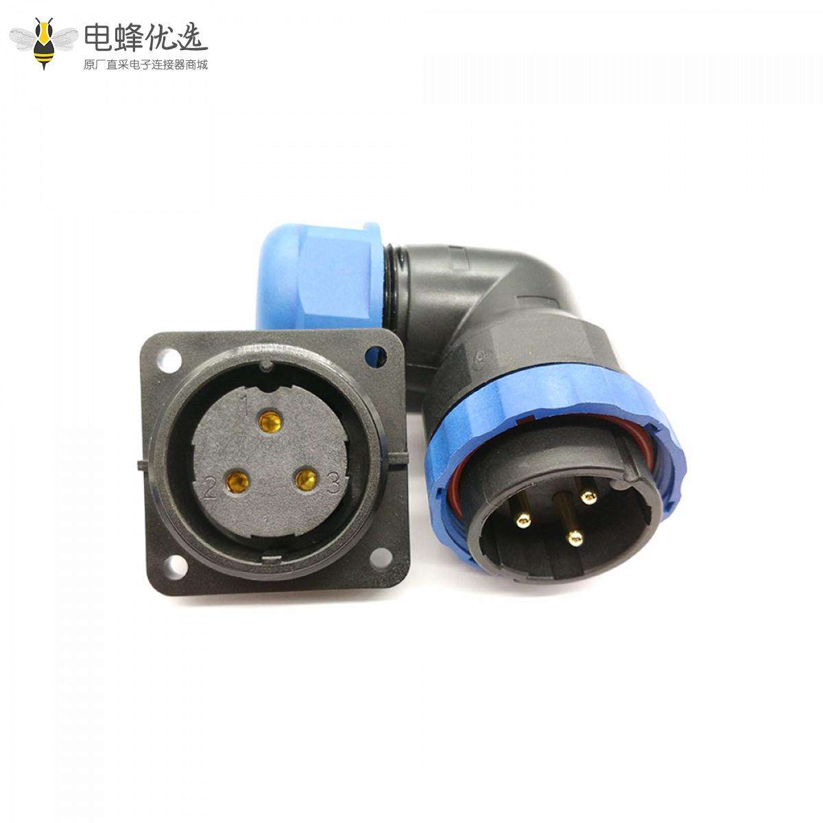 SP29,3芯,弯, 插头,插座,方形四孔法兰,面板安装