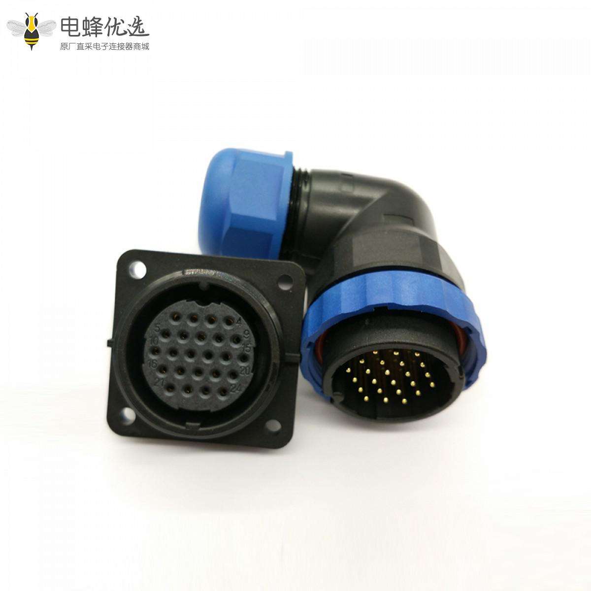 SP29,24芯,弯,插头,插座,方形四孔法兰,面板安装