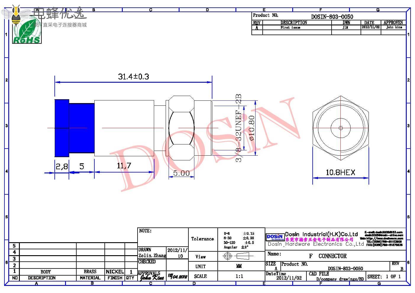 - 阻抗:75 ohm
