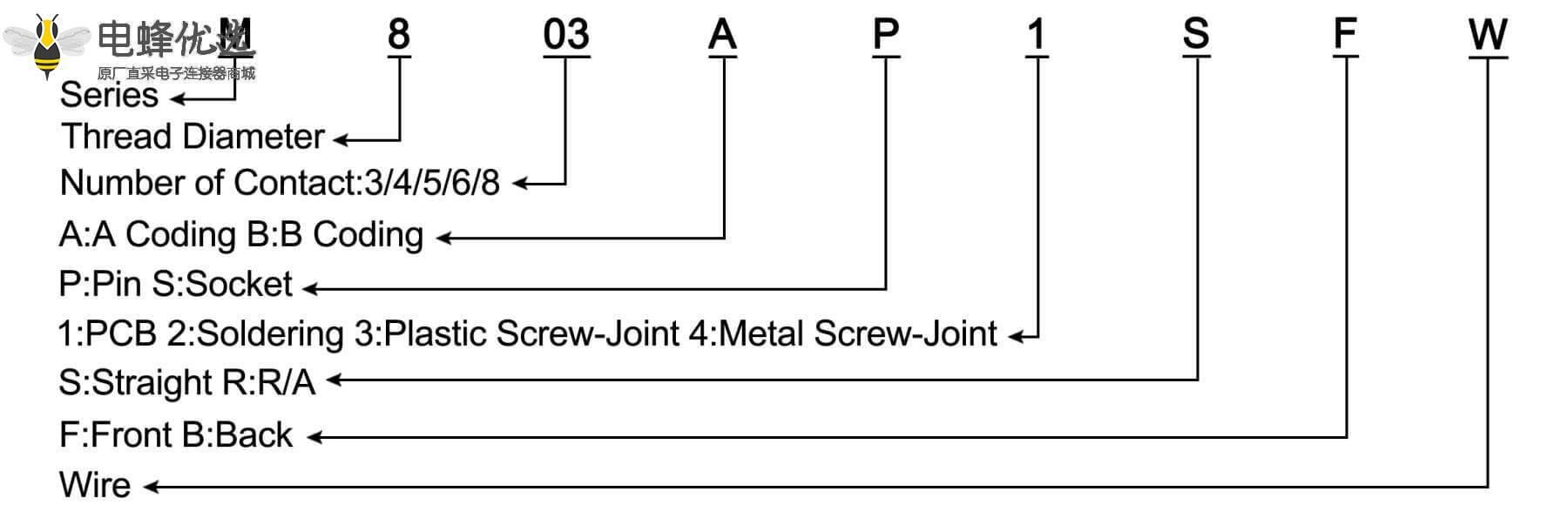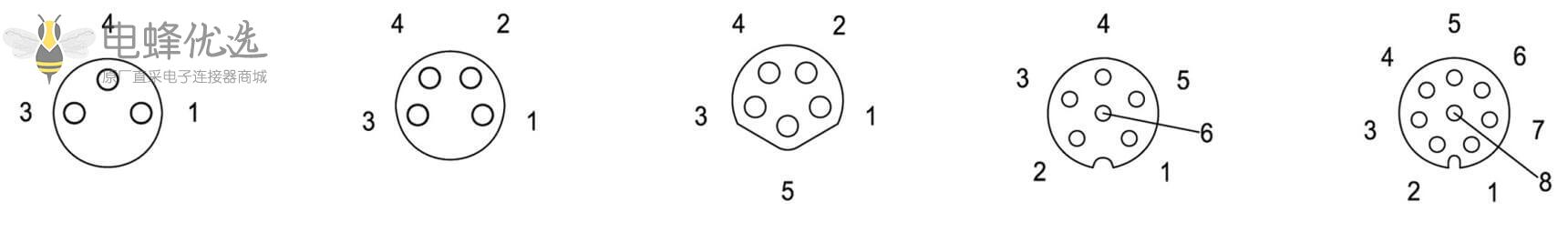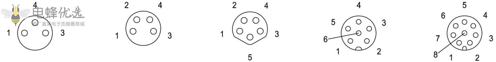 - M8, 3/4/6/8芯, A型, 公座, 前锁板, 直式, 防水, PCB;