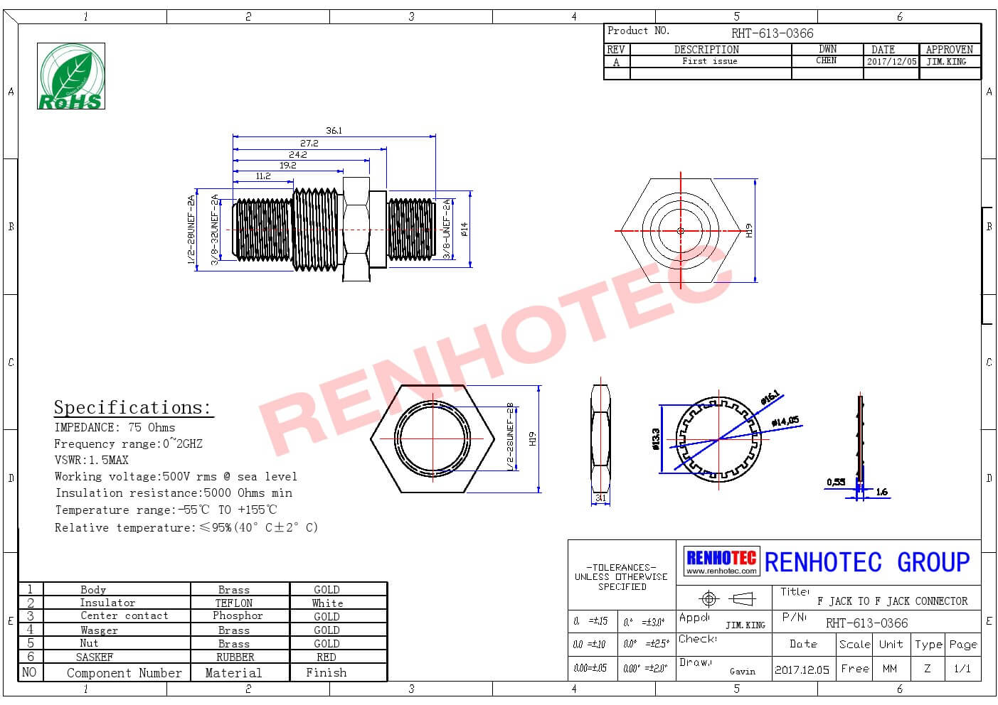 - 阻抗:75 ohm